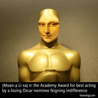 n: the Academy Award for best acting by a losing Oscar nominee, feigning indifference Find this content useful? Share it with your friends!
